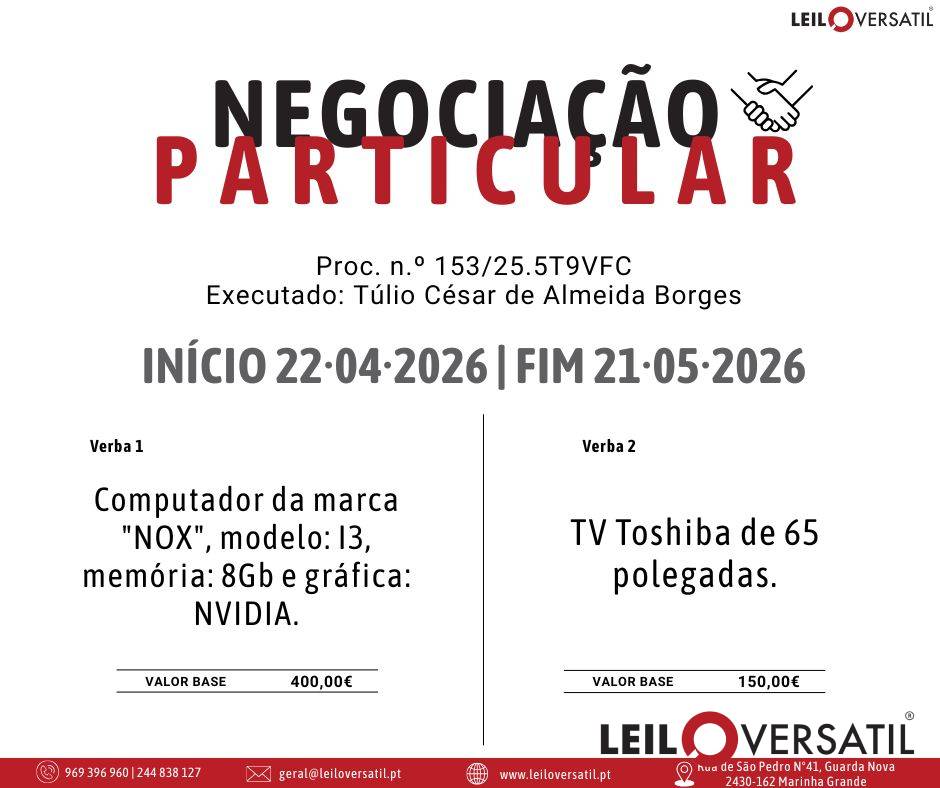 Processo nº 153/25.5T9VFC - Executado: Túlio César de Almeida Borges