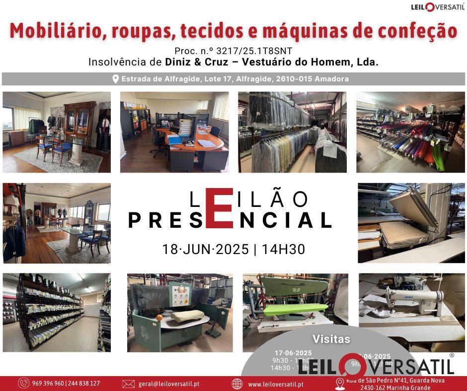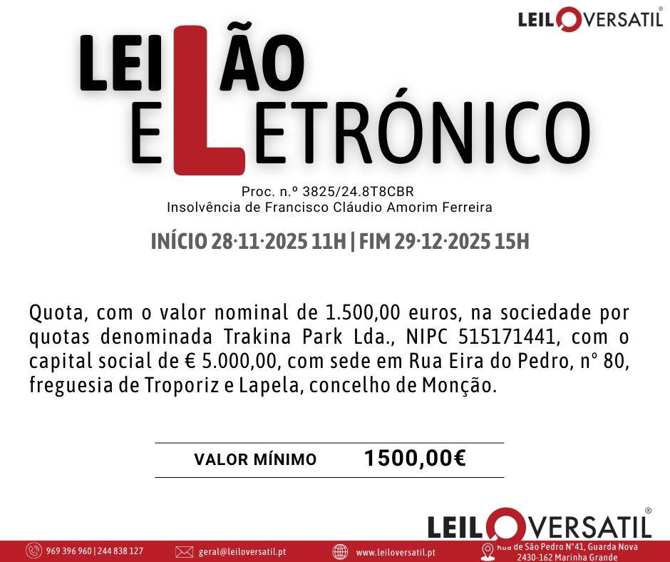 Leilão Eletrónico | Proc. n.º 3825/24.8T8CBR | Insolvência de Francisco Cláudio Amorim Ferreira