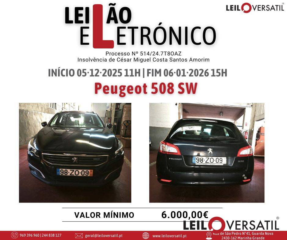 Leilão Eletrónico | Processo nº 514/24.7T8OAZ - Insolvência de César Miguel Costa Santos Amorim